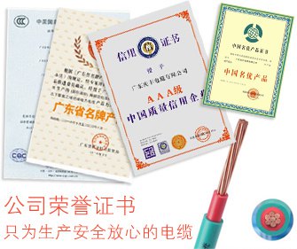 公司先后獲得CCC認證,廣東省名牌,中國名優(yōu)產品,中國質量信用企業(yè),環(huán)境標志產品認證證書,計量體系認證,全國守合同重信用單位,質量管理體系認證,高新技術企業(yè),質量過硬放心品牌,全國消費者信得過產品,阻燃制品標識使用證書,中國綠色環(huán)保產品等證書,廣東慶豐電纜為您的安全保駕護航.